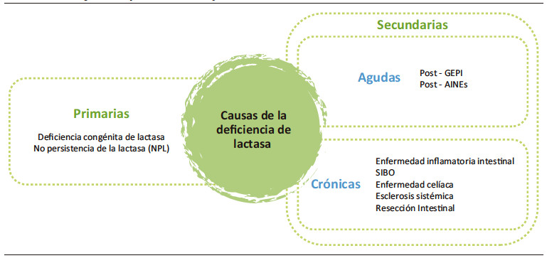 Figura 4. Causas primarias y secundarias de deficiencia de lactasa