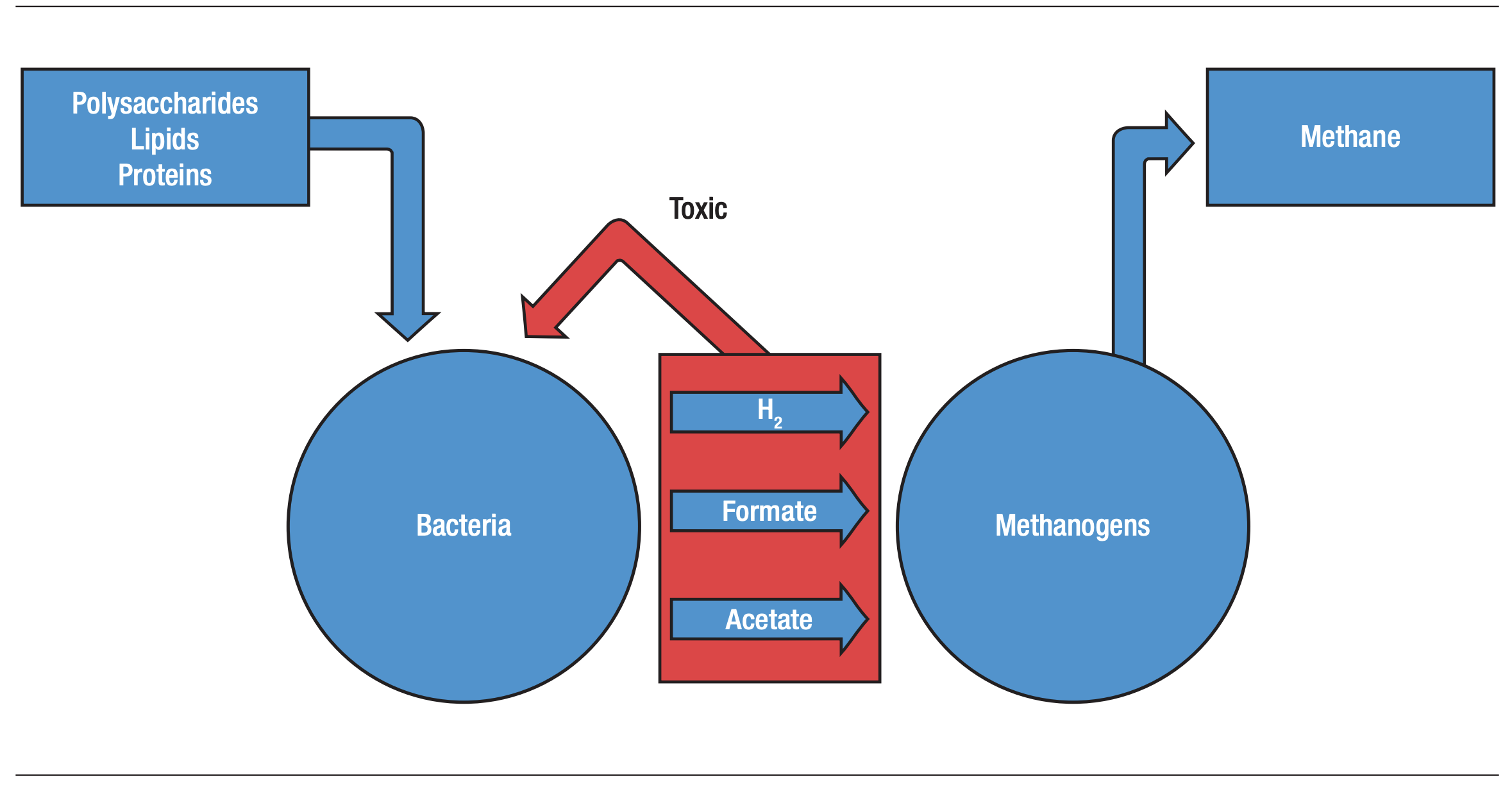 - A decreased methanogen population will be unable to create an environment capable of supporting appropriate bacteria due to the accumulation of toxic metabolites.