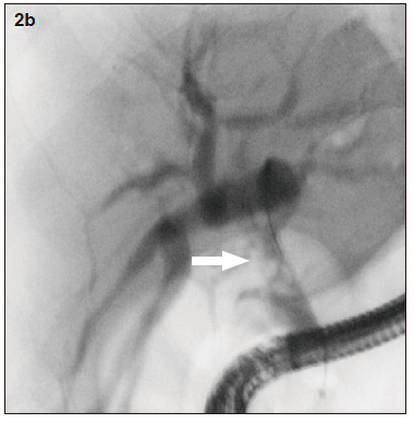 Figura 2a. Colangiopancreatografía retrógrada endoscópica